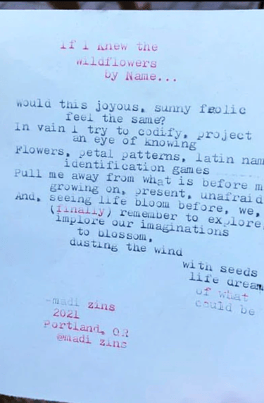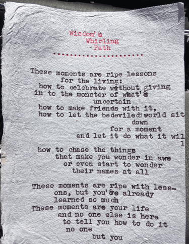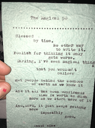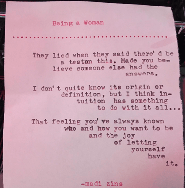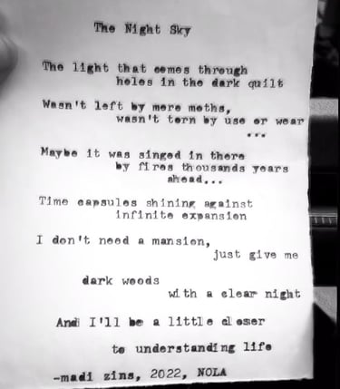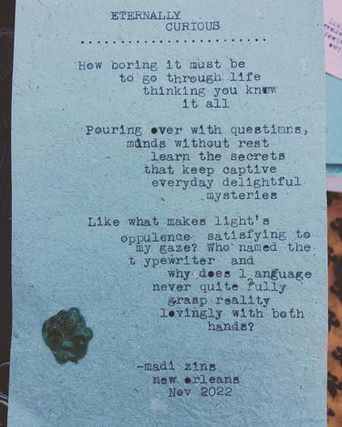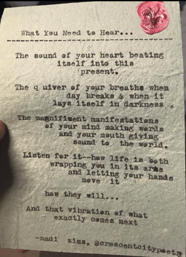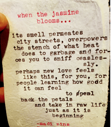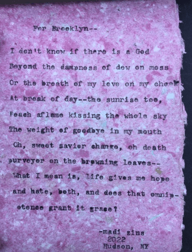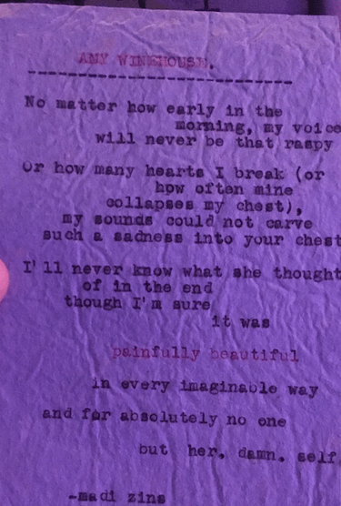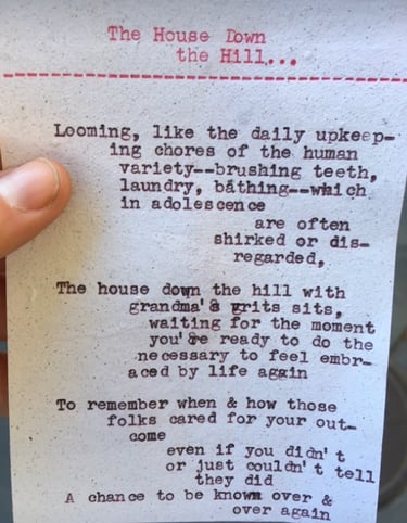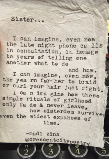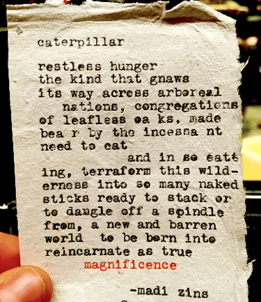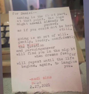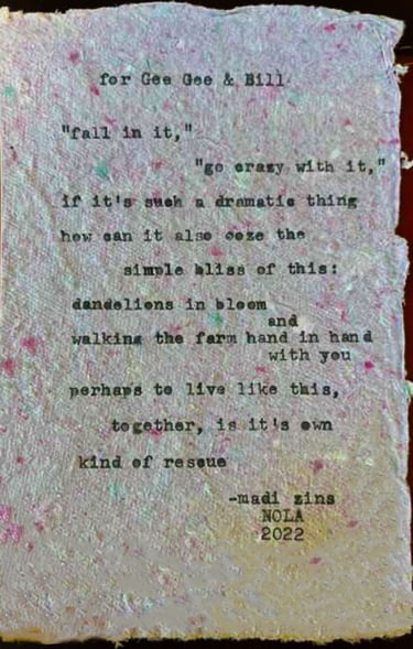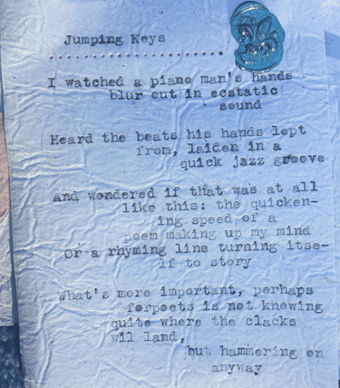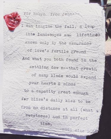 Live typewriter poetry for events and personalized poetry commissions.